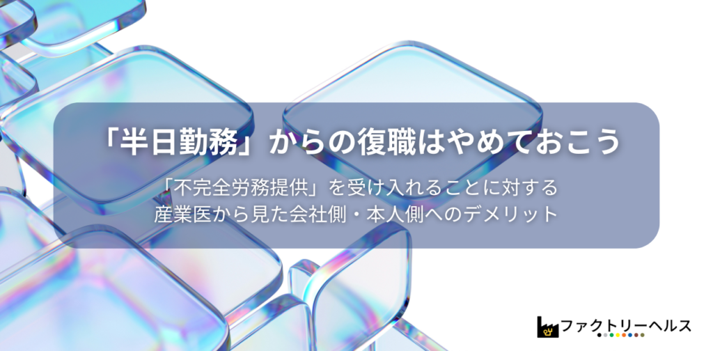 「半日勤務」からの復職はやめておこうー「不完全労務提供」を受け入れることに対する産業医から見た会社側・本人側へのデメリットー