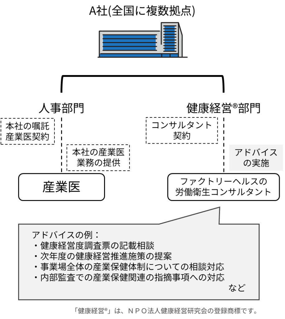 全国に複数の拠点をもつA社は、本社を含めて1000人を超える事業場はなく、産業医は嘱託産業医が中心でした。